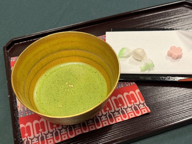 ご厚意に甘えて、金の器で抹茶をいただき、